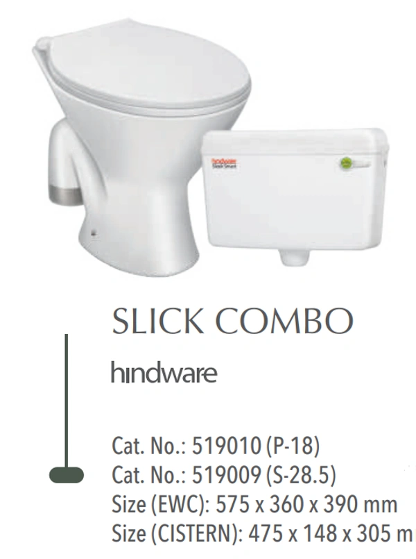 HINDWARE-EWC-SLICK-COMBO-SLEEK-WITH-ESSENCE-CISTERN-(S-28.5)-S-TRAP-519009-575 x 360 x 390 mm-S.W